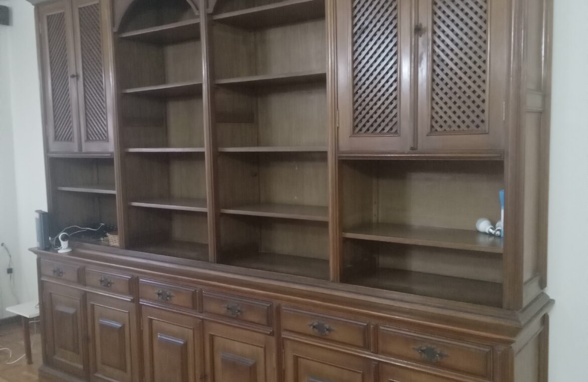 11) Sala grande piso cerâmico com mesa grande e estante disponíveis